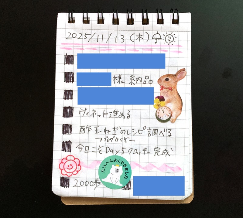 結果、小さなメモ帳に毎日1ページだけ……と、緩~くしてみたら、意外と続けられています。